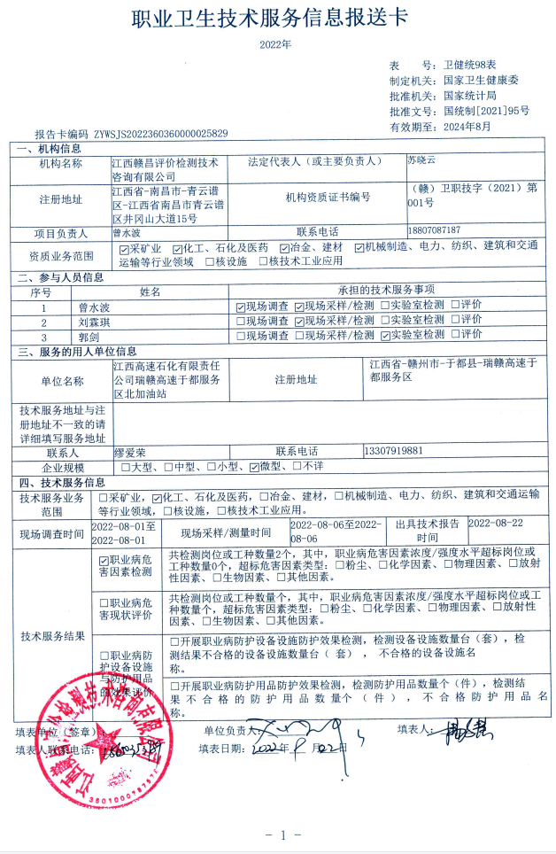 下一篇:江西高速石化有限責任公司瑞贛高速于都服務區(qū)南加油站工作場所職業(yè)病危害因素檢測報告