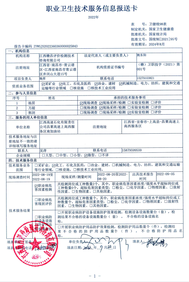 下一篇:江西高速石化有限責(zé)任公司武吉高速修水服務(wù)區(qū)西加油站工作場所職業(yè)病危害因素檢測報告