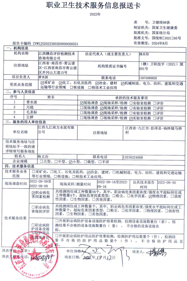 上一篇:江西省修水香爐山鎢業(yè)有限責(zé)任公司工作場所職業(yè)病危害因素檢測報(bào)告