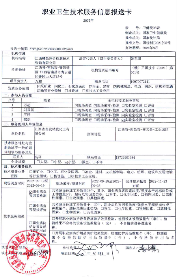 江西省奮發(fā)粘膠化工有限公司工作場所職業(yè)病危害因素檢測報(bào)告
