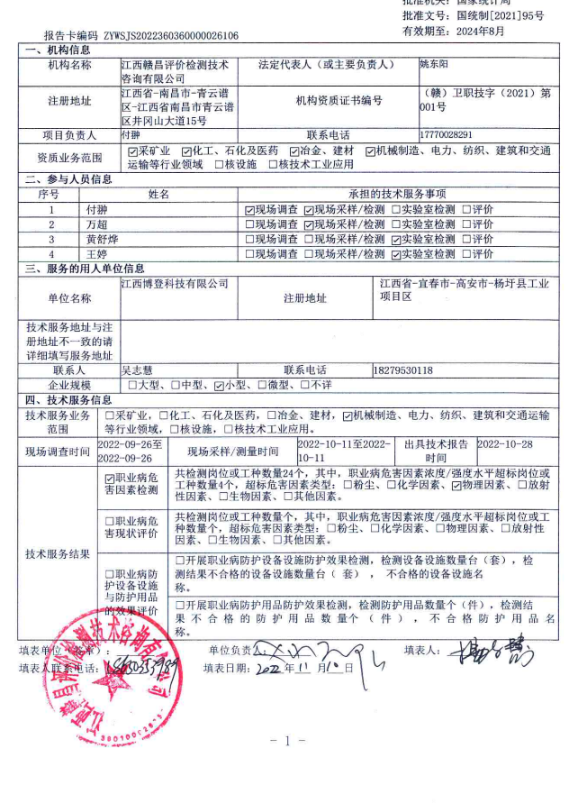下一篇:江西省交通工程集團(tuán)有限公司昌景黃鐵路CJHZQJX-5標(biāo)項(xiàng)目部一工區(qū)1#拌和站、1#鋼筋加工廠,二工區(qū)(梁場)2#鋼筋加工廠、3#鋼筋加工廠、2#拌和站工作場所職業(yè)病危害因素檢測報(bào)告