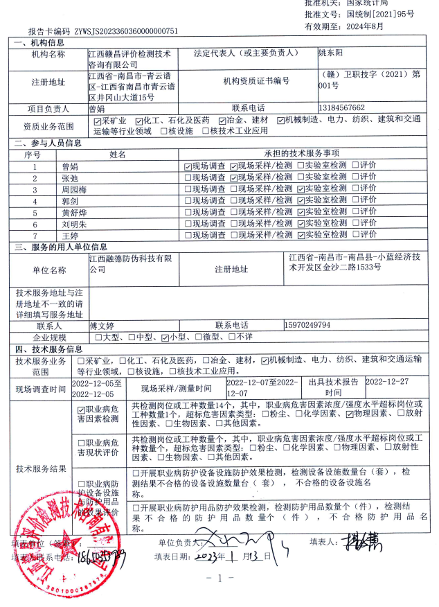 江西融德防偽科技有限公司工作場(chǎng)所職業(yè)病危害因素檢測(cè)報(bào)告