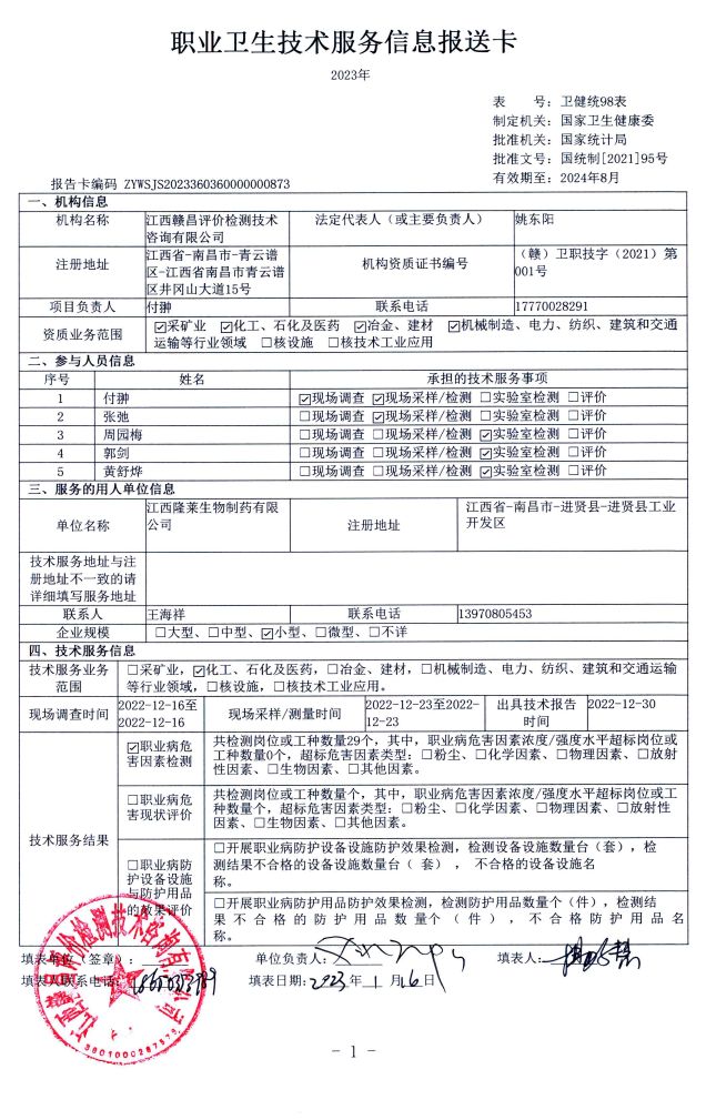 下一篇:宜春綠色動(dòng)力再生能源有限公司工作場(chǎng)所職業(yè)病危害因素檢測(cè)報(bào)告