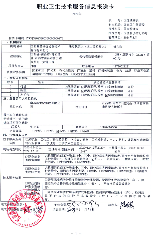 南昌新世紀水泥有限公司工作場所職業(yè)病危害因素檢測報告