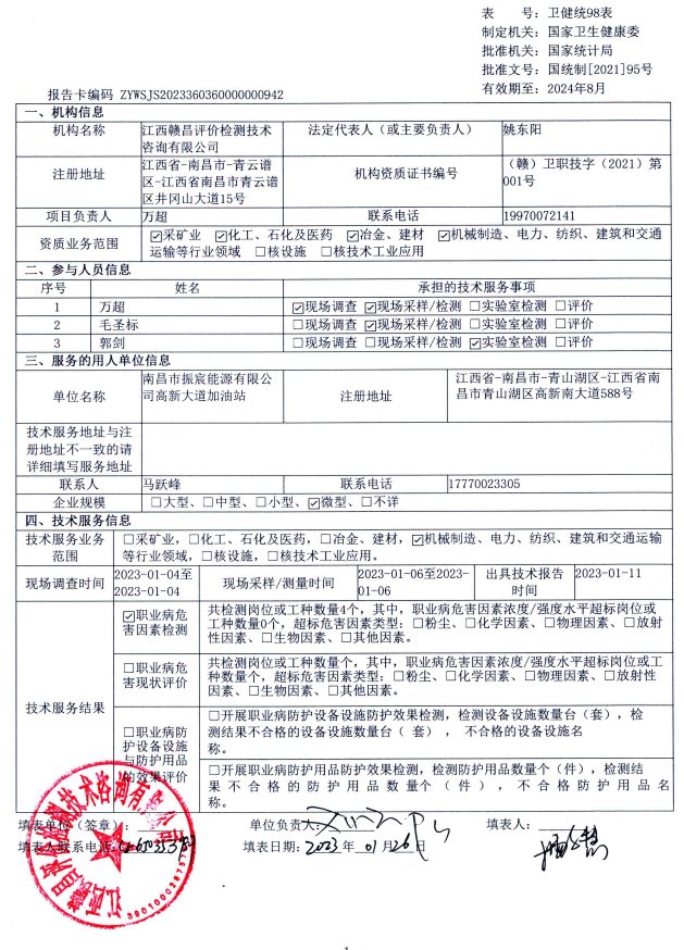 南昌市來瑞投資有限公司京南加油站工作場所職業(yè)病危害因素檢測報告