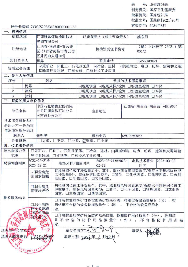 下一篇:江西理文化工有限公司有機(jī)氟化工系列產(chǎn)品生產(chǎn)裝置工作場(chǎng)所職業(yè)病危害因素檢測(cè)報(bào)告