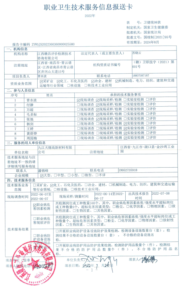 上一篇:江西高速實(shí)業(yè)開發(fā)有限公司峽江服務(wù)區(qū)加油站工作場(chǎng)所職業(yè)病危害因素檢測(cè)報(bào)告