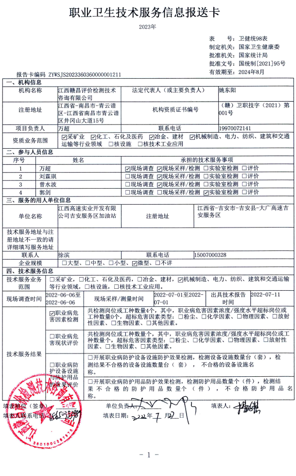 上一篇:中國石化銷售股份有限公司江西南昌石油分公司新建分公司加油站工作場(chǎng)所職業(yè)病危害因素檢測(cè)報(bào)告