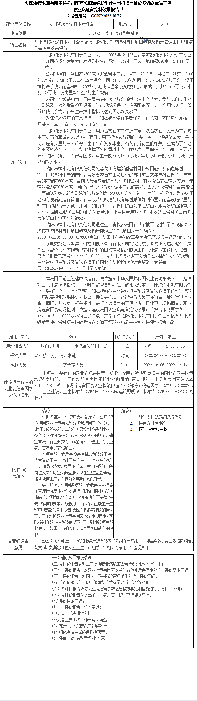 上一篇:弋陽海螺水泥有限責(zé)任公司江西省弋陽縣曹溪二礦區(qū)制堿用灰?guī)r礦800萬t/a采礦工程項(xiàng)目 職業(yè)病危害控制效果報(bào)告書