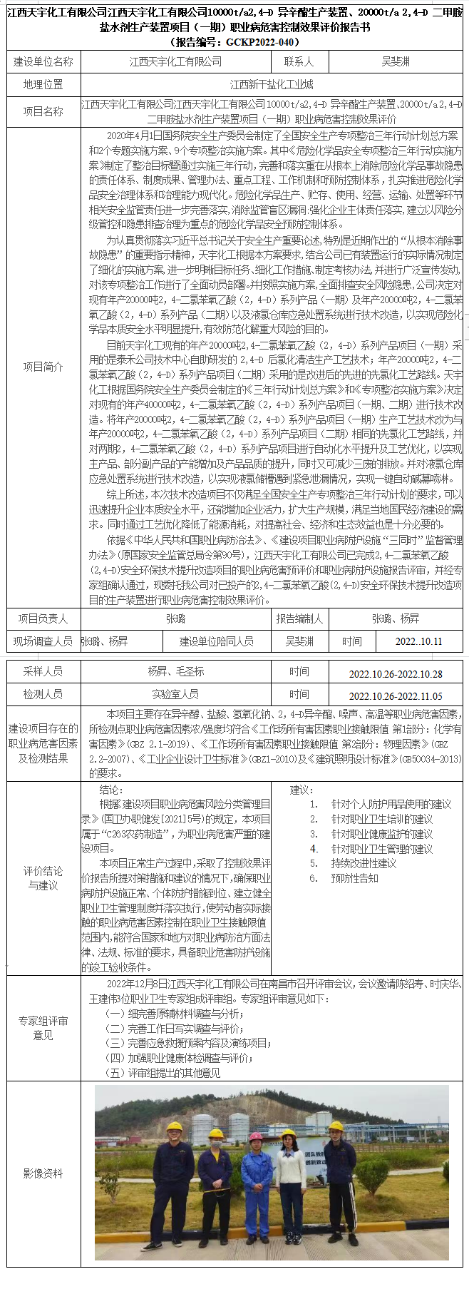 上一篇:江西天宇化工有限公司2,4-二氯苯氧乙酸(2,4-D)安全環(huán)保技術(shù)提升改造項目 職業(yè)病危害控制效果評價報告書(報告編號:GCKP2022-039)