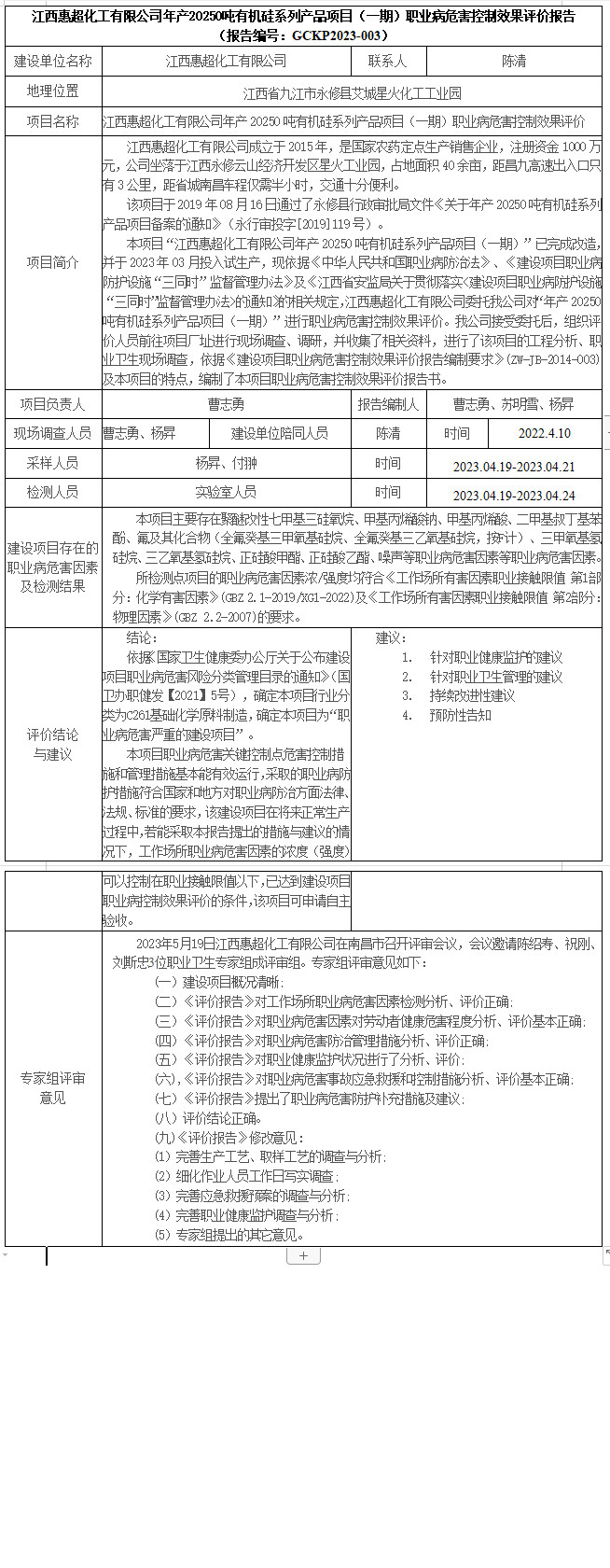 上一篇:贛州海螺水泥有限責任公司職業(yè)病危害現狀評價報告書(報告編號:GCXP2022-039)