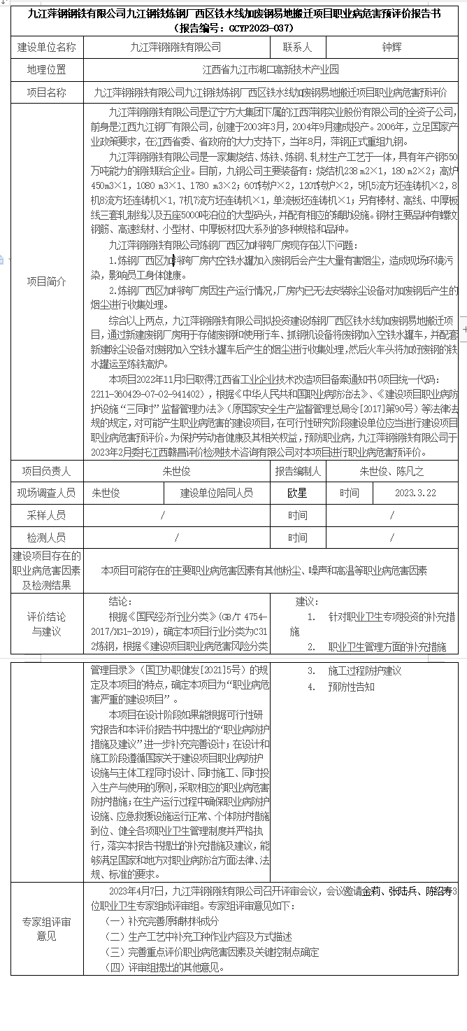 下一篇:江西理文化工有限公司有機氟化工系列(二期)產(chǎn)品結構調(diào)整項目(全氟丙烯裝置Ⅱ) 職業(yè)病危害控制效果評價報告書(報告編號:GCKP2023-019)