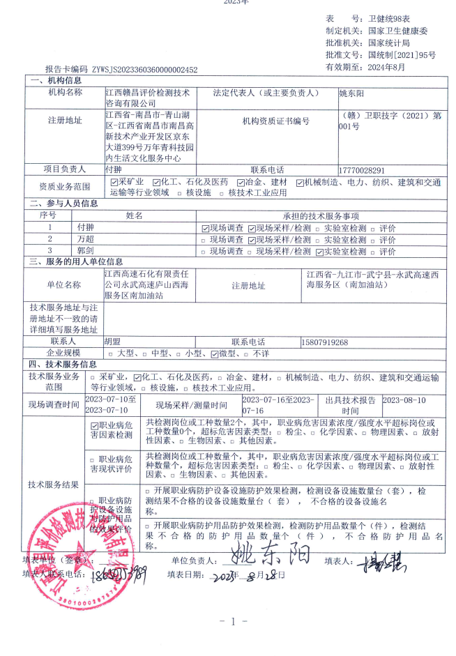 上一篇:江西高速石化有限責(zé)任公司永武高速廬山西海服務(wù)區(qū)北加油站工作場所職業(yè)病危害因素檢測報(bào)告
