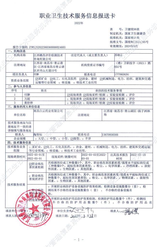 南昌白云藥業(yè)有限公司檢測報(bào)告