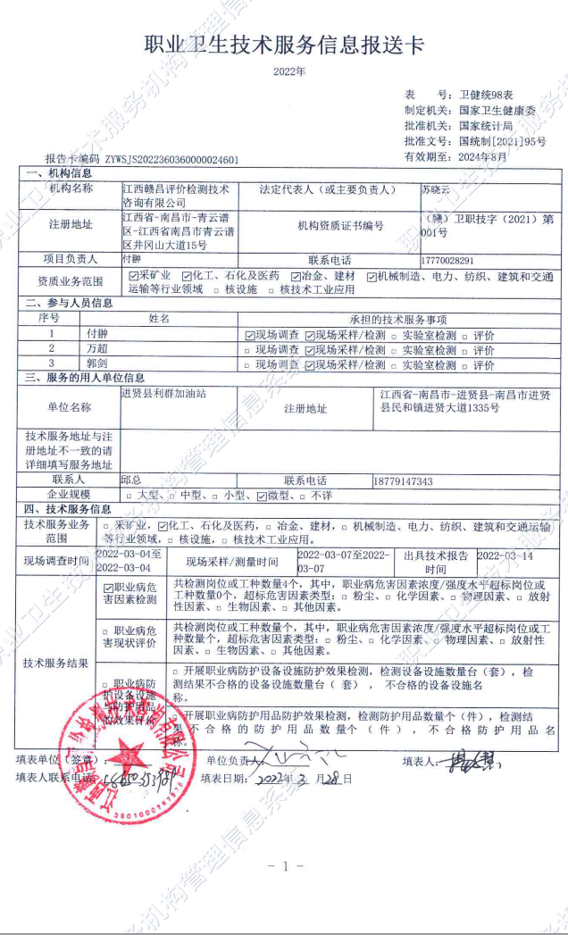 進(jìn)賢縣利群加油站檢測(cè)報(bào)告