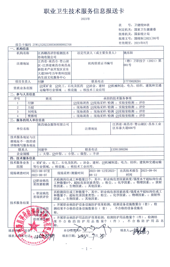 南昌福眾服飾有限公司工作場所職業(yè)病危害因素檢測報告