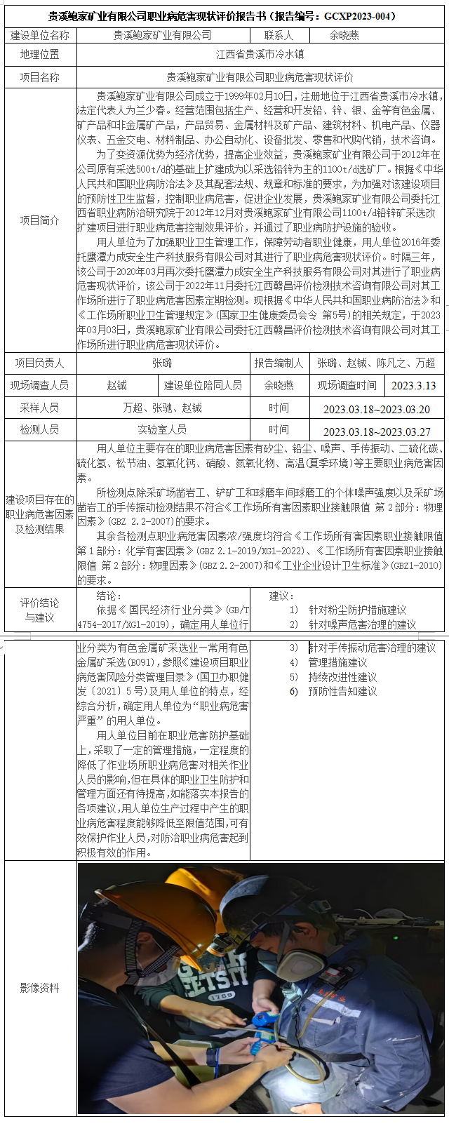 貴溪鮑家礦業(yè)有限公司職業(yè)病危害現(xiàn)狀評(píng)價(jià)報(bào)告書(報(bào)告編號(hào):GCXP2023-004)
