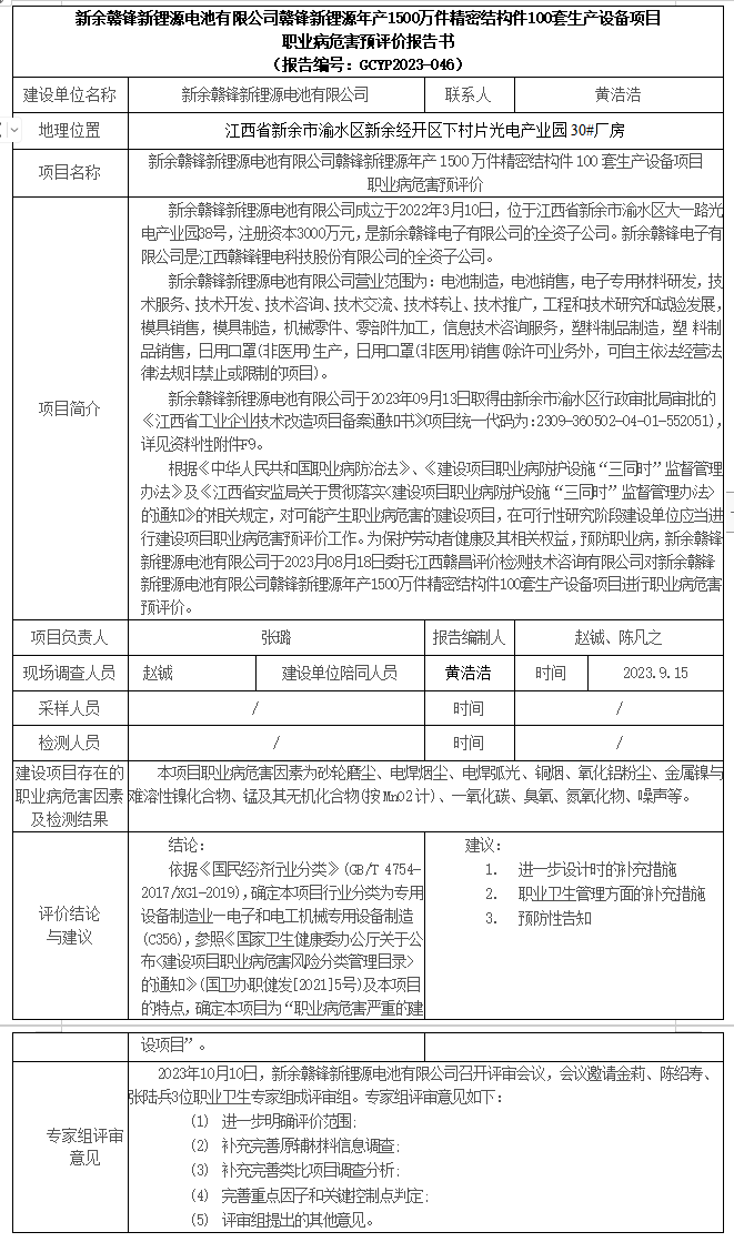 下一篇:宜春贛鋒新材料有限公司年產(chǎn)1000噸超薄鋰帶項目職業(yè)病危害預(yù)評價報告書 (報告編號:GCYP2023-030)