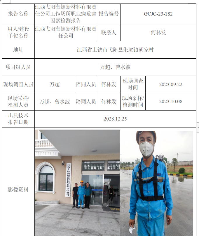 江西弋陽海螺新材料有限責任公司工作場所職業(yè)病危害因素檢測報告