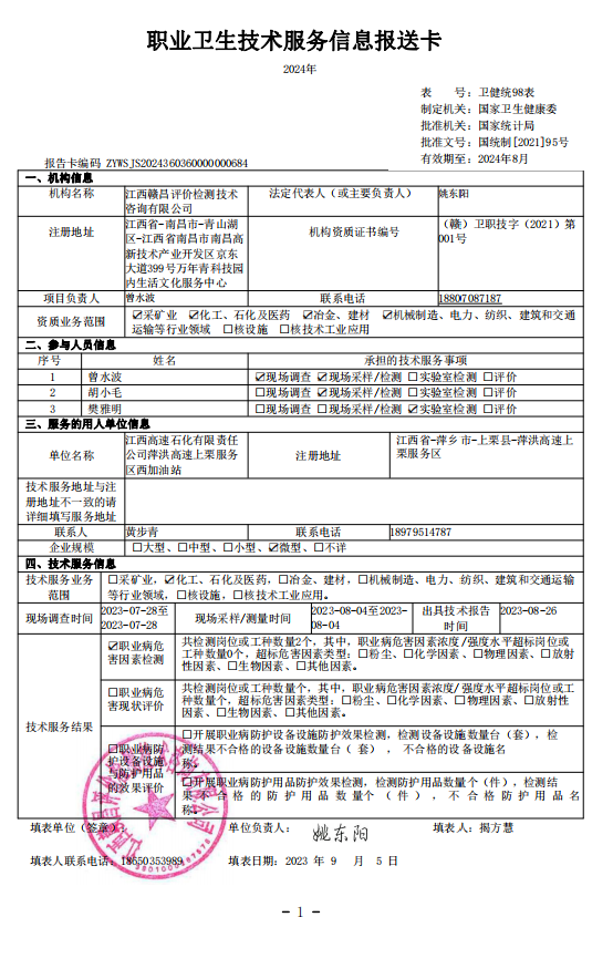 下一篇:江西高速石化有限責(zé)任公司昌栗高速上高東服務(wù)區(qū)北加油站工作場所職業(yè)病危害因素檢測報告