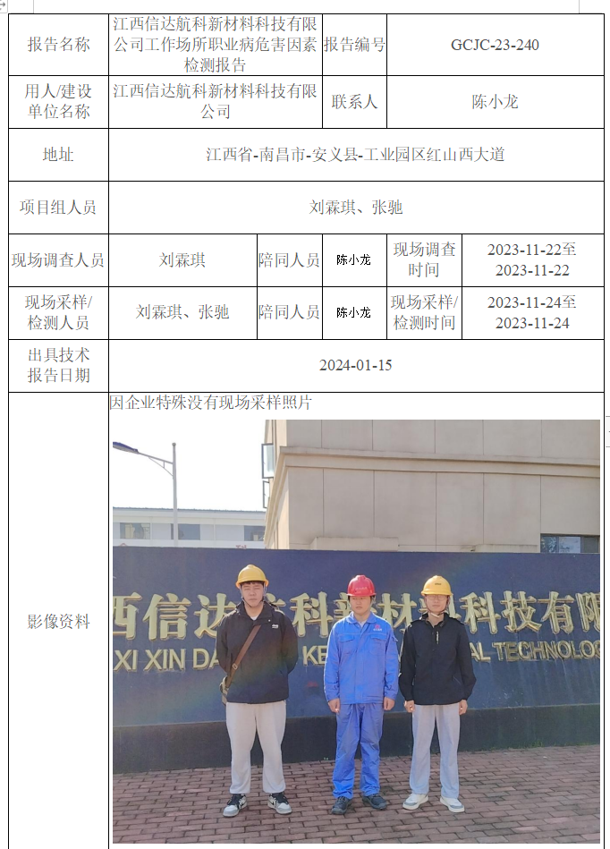 江西信達(dá)航科新材料科技有限公司工作場所職業(yè)病危害因素檢測報(bào)告