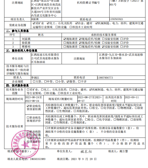 下一篇:《江西高速石化有限責任公司武吉高速修水服務區(qū)西加油站工作場所職業(yè)病危害因素檢測報告》(報告編號:GCJC-23-144-17)