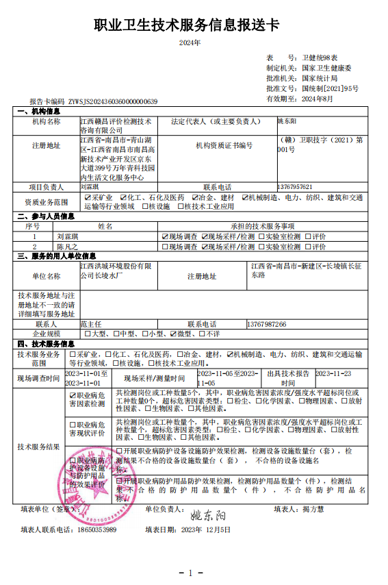 上一篇:《江西高速石化有限責(zé)任公司武吉高速宜豐服務(wù)區(qū)西加油站工作場所職業(yè)病危害因素檢測報告》(報告編號:GCJC-23-144-14)