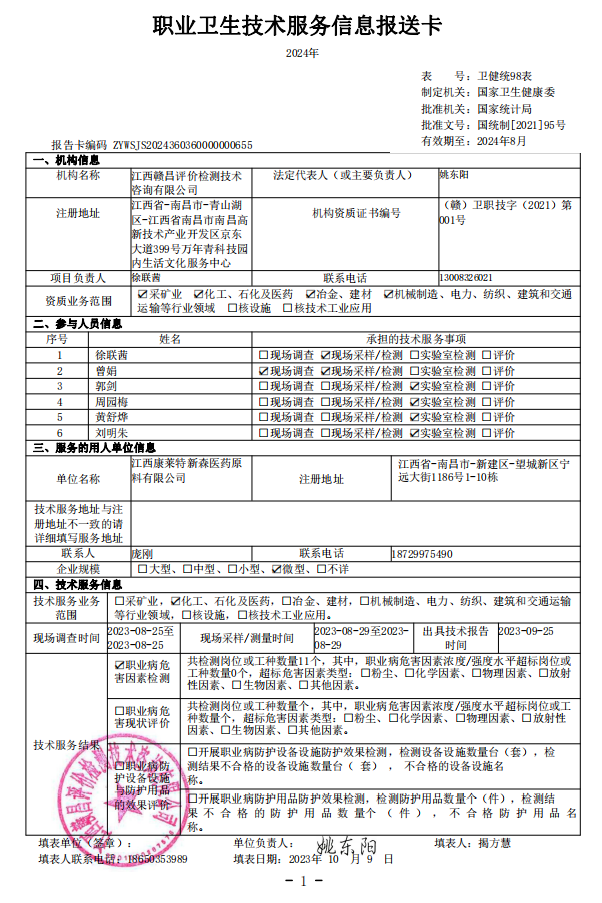 上一篇:《江西美園電纜集團有限公司工作場所職業(yè)病危害因素檢測報告》(報告編號:GCJC-23-101)