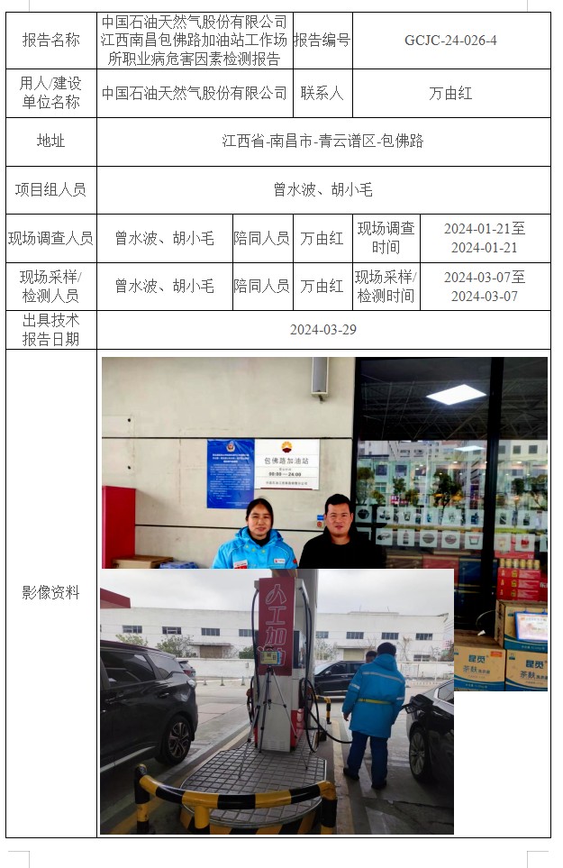 中國石油天然氣股份有限公司江西南昌包佛路加油站工作場所職業(yè)病危害因素檢測報告GCJC-24-026-4