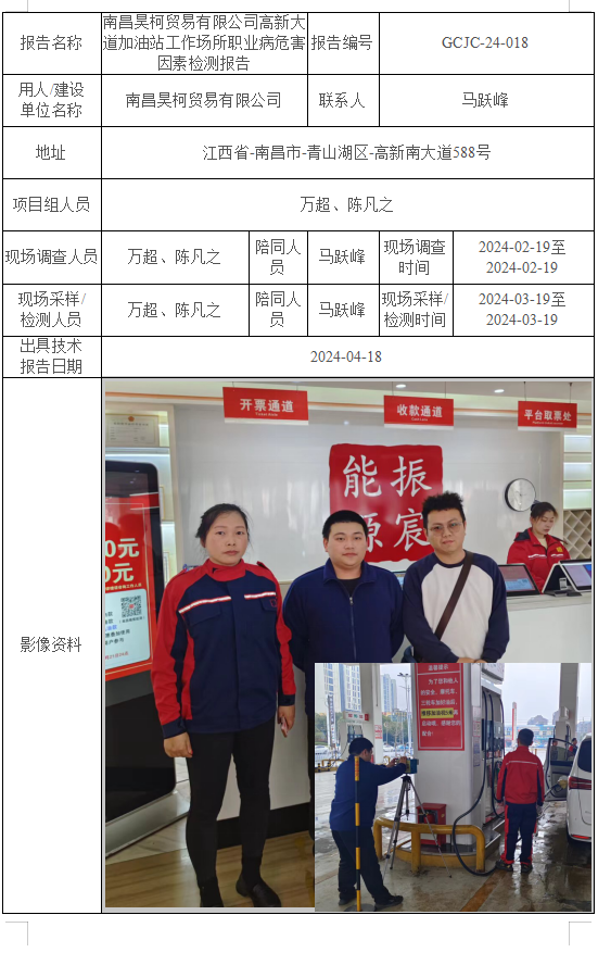 下一篇:南昌市來瑞投資有限公司京南加油站工作場(chǎng)所職業(yè)病危害因素檢測(cè)報(bào)告GCJC-24-019