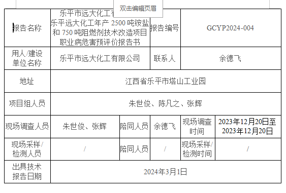 下一篇:江西理文化工有限公司有機(jī)氟化工系列產(chǎn)品項(xiàng)目(TFE裝置II) 職業(yè)病危害控制效果評價報(bào)告GCKP2024-003