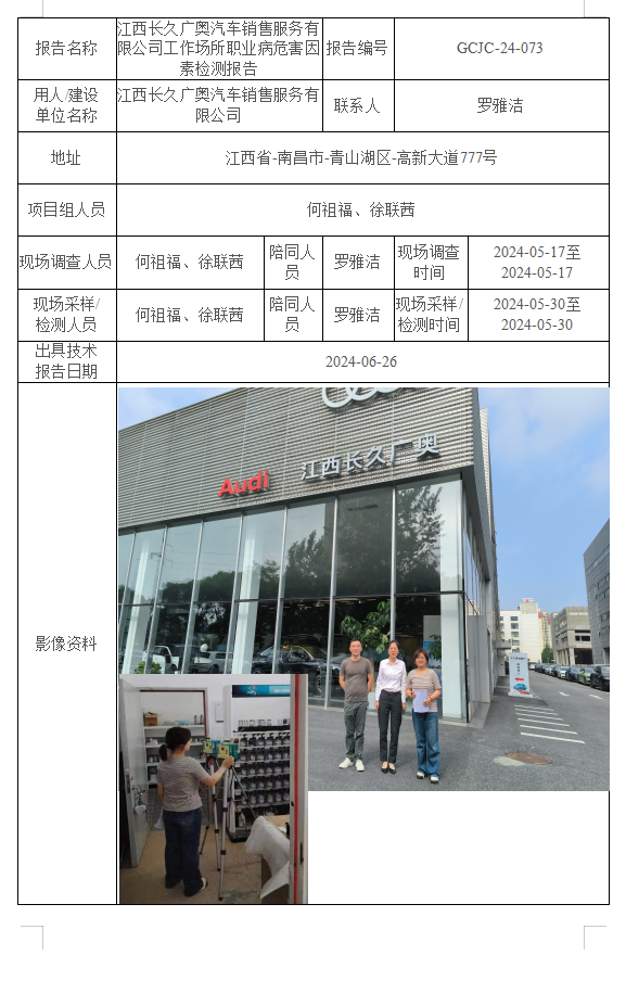 上一篇:九江市浩川消防裝備有限公司工作場所職業(yè)病危害因素檢測報告GCJC-24-077