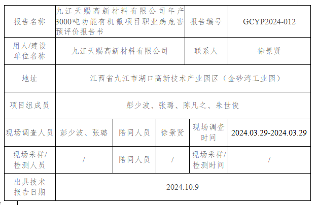 上一篇:九江諾爾新材料科技有限公司集成電路電子級新材料項目(一期)職業(yè)病危害控制效果評價報告書GCKP2024-018