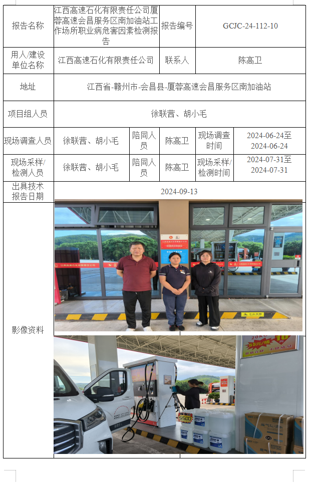 江西高速石化有限責任公司廈蓉高速會昌服務區(qū)南加油站工作場所職業(yè)病危害因素檢測報告GCJC-24-112-10