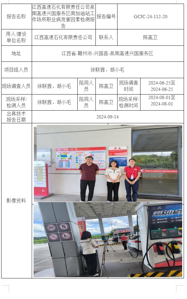 上一篇:江西高速石化有限責任公司泉南高速興國服務區(qū)北加油站工作場所職業(yè)病危害因素檢測報告GCJC-24-112-19