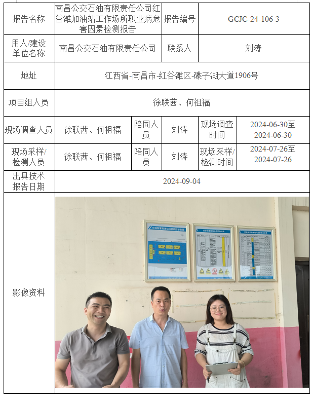下一篇:南昌公交石油有限責(zé)任公司民營加油站工作場所職業(yè)病危害因素檢測報告GCJC-24-106-4