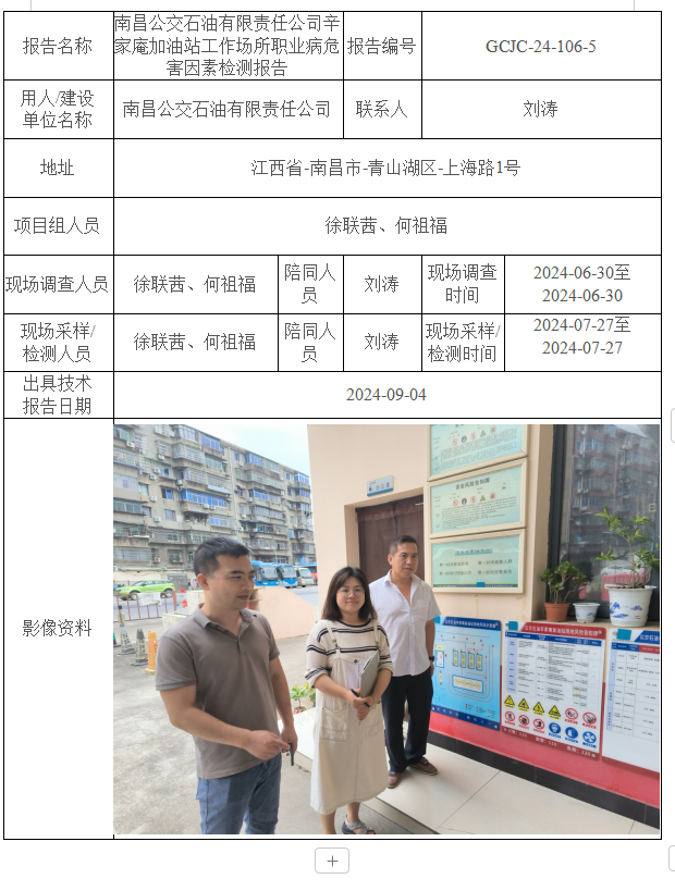 南昌公交石油有限責(zé)任公司辛家庵加油站工作場所職業(yè)病危害因素檢測報告GCJC-24-106-5