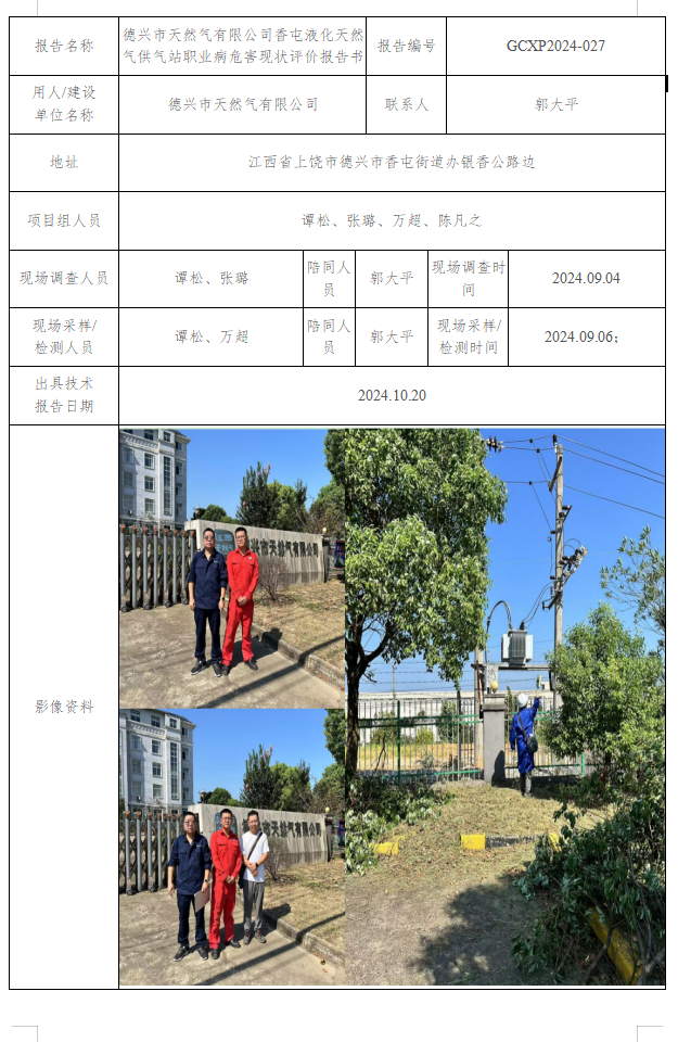 德興市天然氣有限公司香屯液化天然氣供氣站職業(yè)病危害現(xiàn)狀評價(jià)報(bào)告書