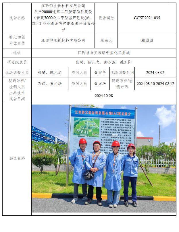 江西仰立新材料有限公司 年產(chǎn)20000噸苯二甲胺等項(xiàng)目建設(shè) (新建7000t/a二甲胺基環(huán)己烷(間、對(duì)))職業(yè)病危害控制效果評(píng)價(jià)報(bào)告書
