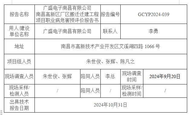 下一篇:廣盛電子南昌有限公司 南昌高新區(qū)廠區(qū)搬遷遷建工程項目職業(yè)病防護設(shè)施設(shè)計專篇