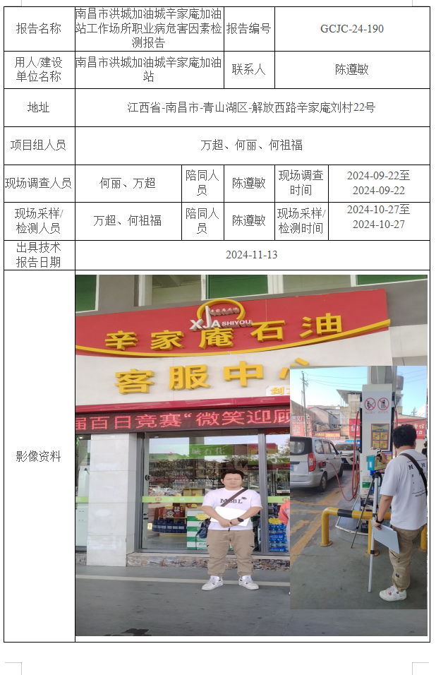 南昌市洪城加油城辛家庵加油站工作場所職業(yè)病危害因素檢測報告