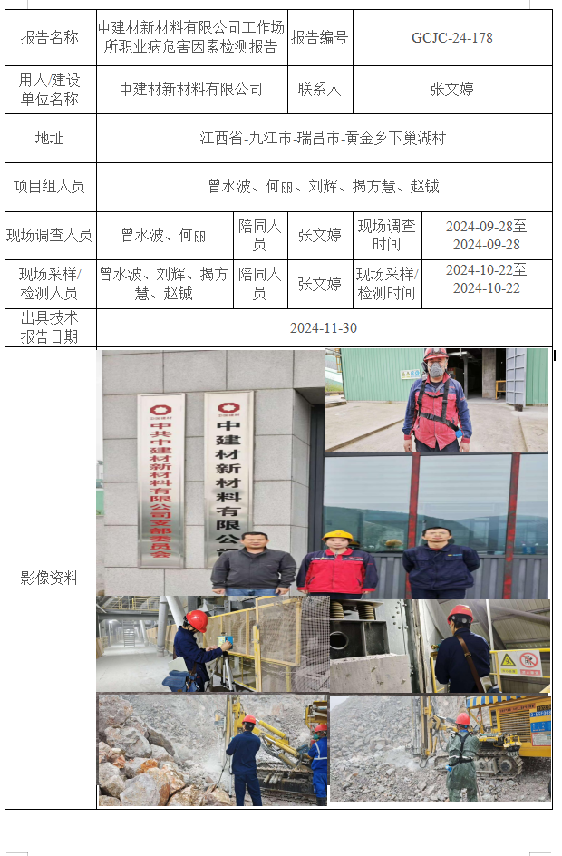 中建材新材料有限公司工作場所職業(yè)病危害因素檢測報告