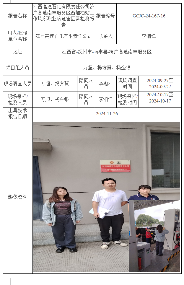 上一篇:江西高速石化有限責任公司濟廣高速南豐服務區(qū)東加油站工作場所職業(yè)病危害因素檢測報告