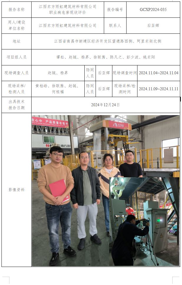 江西東方雨虹建筑材料有限公司 職業(yè)病危害現(xiàn)狀評價