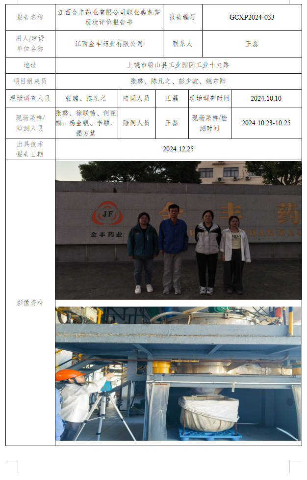 江西金豐藥業(yè)有限公司職業(yè)病危害現(xiàn)狀評價報告書