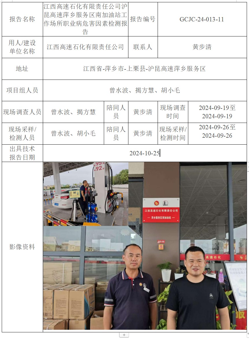 江西高速石化有限責(zé)任公司滬昆高速萍鄉(xiāng)服務(wù)區(qū)南加油站工作場(chǎng)所職業(yè)病危害因素檢測(cè)報(bào)告
