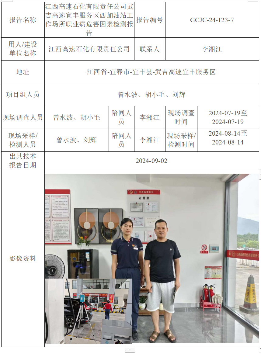 江西高速石化有限責(zé)任公司武吉高速宜豐服務(wù)區(qū)西加油站工作場所職業(yè)病危害因素檢測報告