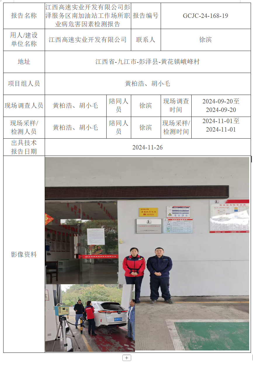 下一篇:江西高速實業(yè)開發(fā)有限公司彭澤服務區(qū)北加油站工作場所職業(yè)病危害因素檢測報告