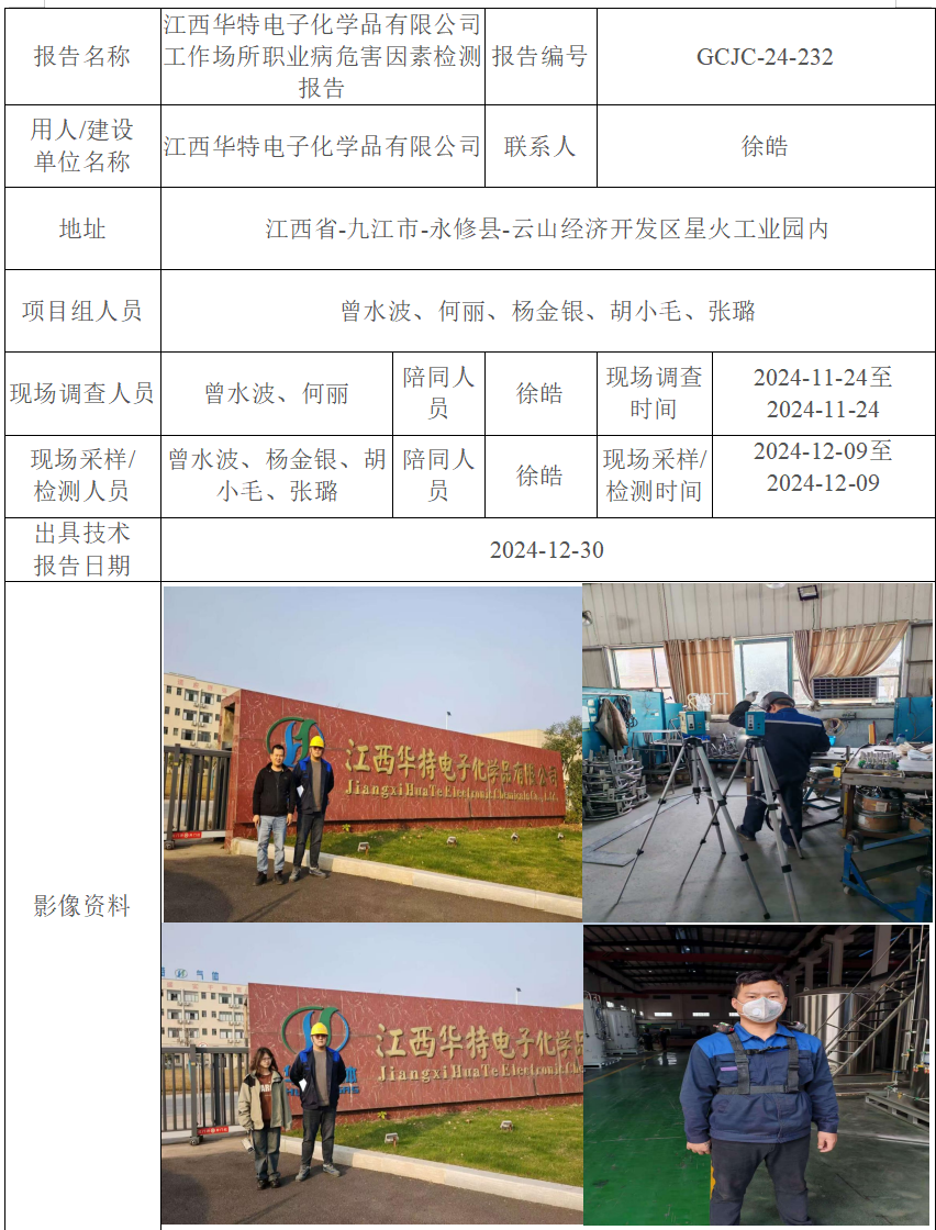 江西華特電子化學品有限公司工作場所職業(yè)病危害因素檢測報告