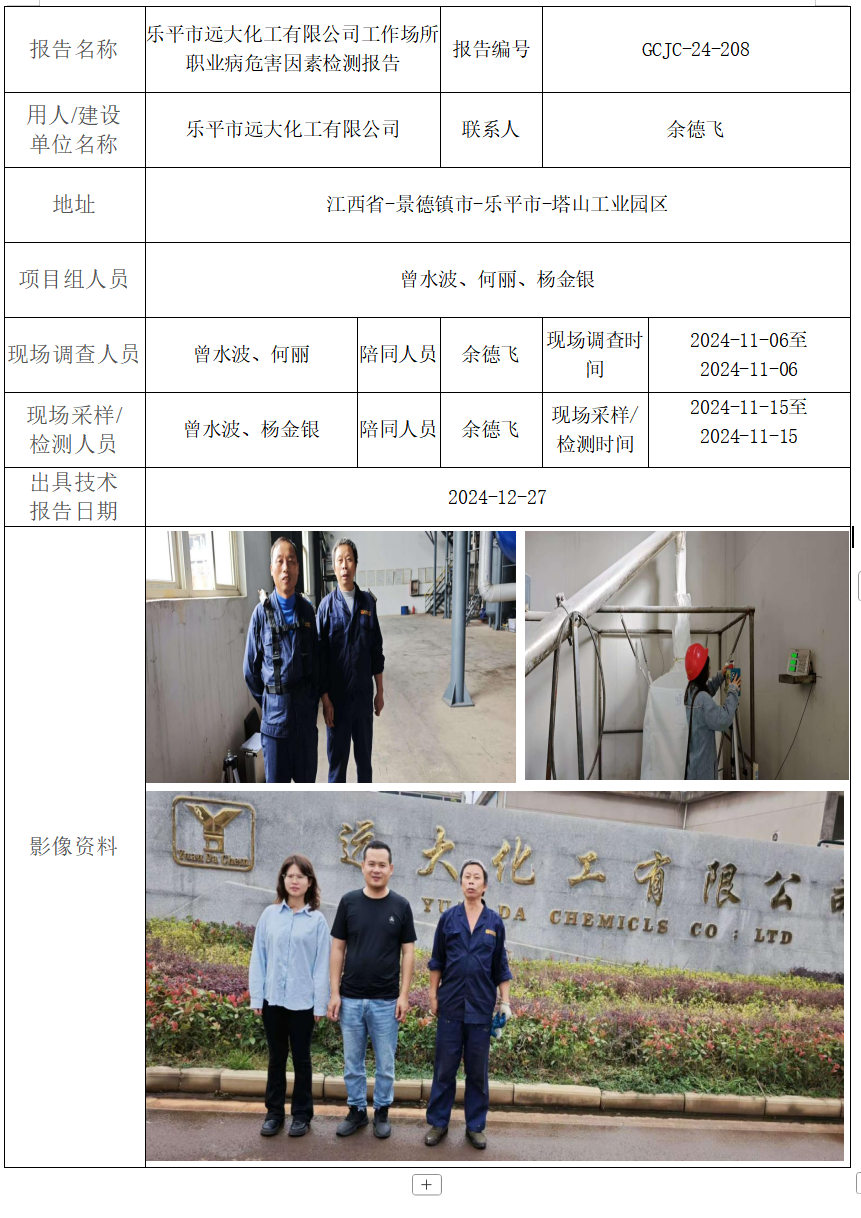 下一篇:江西善淵藥業(yè)有限公司工作場(chǎng)所職業(yè)病危害因素檢測(cè)報(bào)告